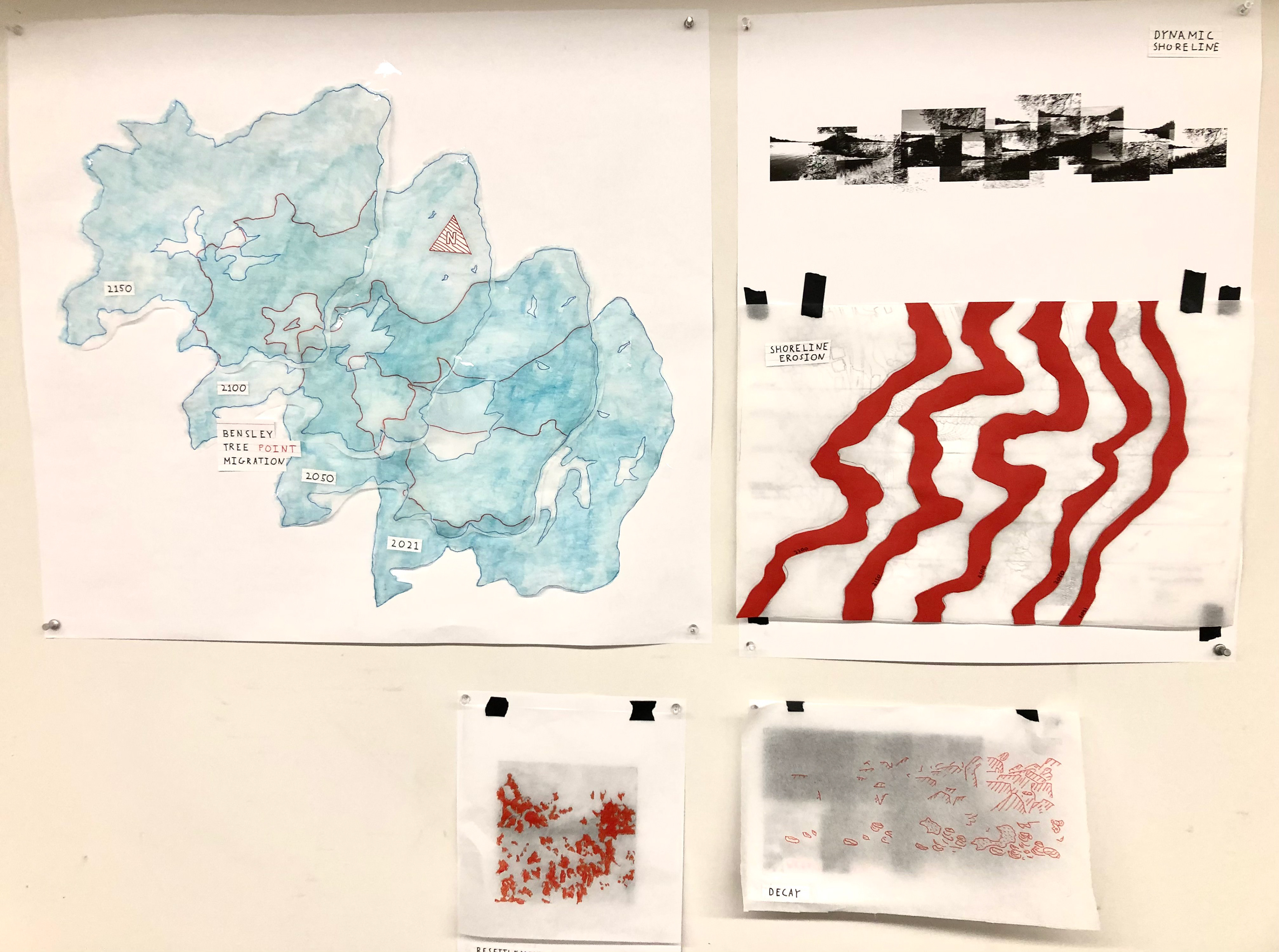 Graphic representation strategies I developed visualizing landscape systems for my first year studio